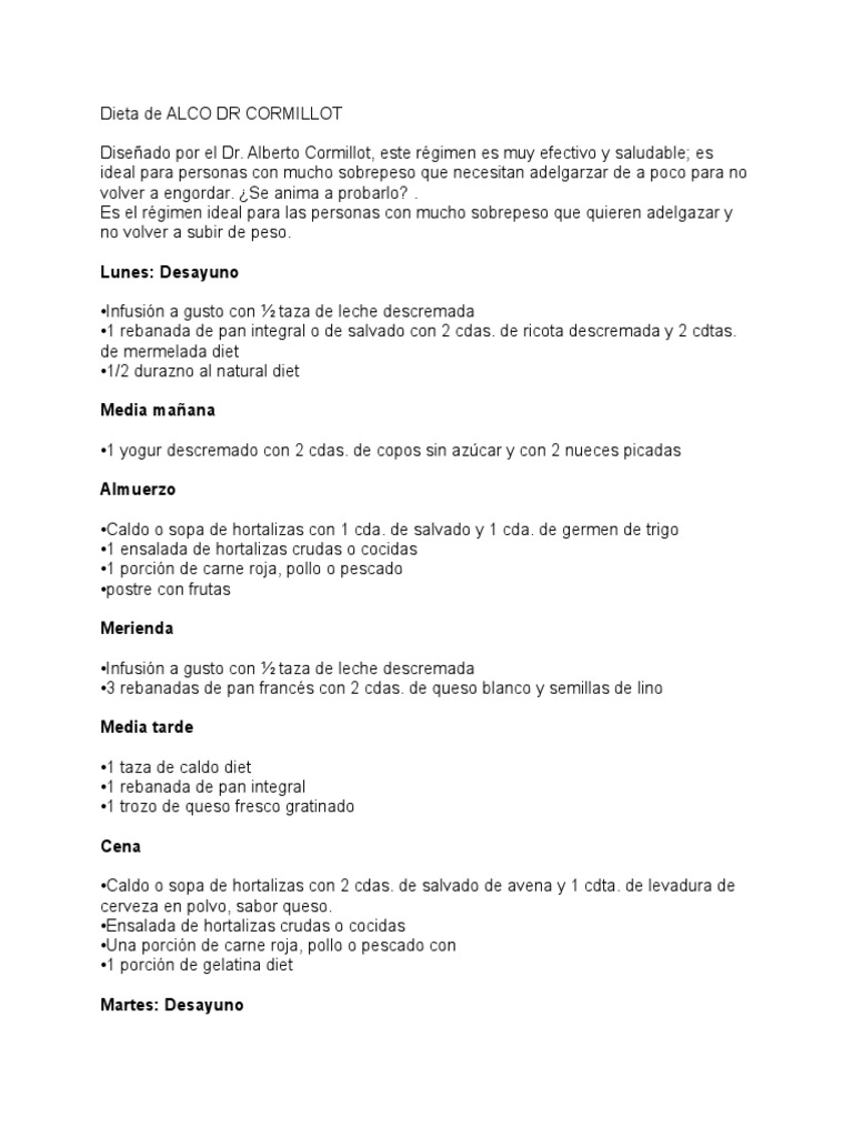 El dr cormillot es un conocido médico dietista de argentina que viene trabajando hace muchos años en la alimentación equilibrada y las dietas para adelgazar. 110 g de harina integral. El nuevo plan semanal del dr. Dieta club brinda tratamiento para el sobrepeso y desórdenes alimentarios. Aquí veremos su propuesta para una dieta de 1200 calorías al día, que te ayudará a adelgazar y mantenerte en tu peso adecuado.